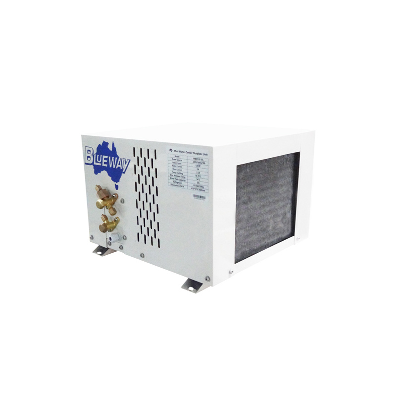 Õhkjahutusega minivesijahuti, millel on jagatud tootekujundus ja R134a külmutusagens, võib jahutada vee temperatuuri kuni 15 ℃. See jahuti on ideaalne lahendus duši ja vanni jaoks hügieenilise jahutatud vee jaoks, mis sobib eriti kuumaks suveks lahe piirkonnas.